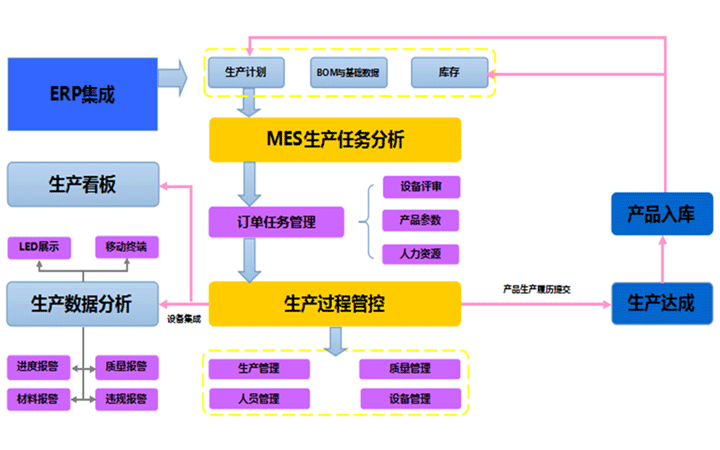 生產過程的實時數據采集、控制、分析和歷史追溯。它是企業內部計劃、物流、生產、品質部門取得手生產信息的保障系統。