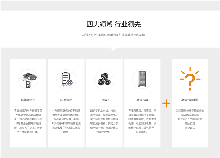 針對國家重點扶持新能源領(lǐng)域?qū)I(yè)研發(fā)電池軟包、動力電池PACK、電池PCM保護(hù)板等高端智能成套裝備及工業(yè)機(jī)器人系統(tǒng)集成。