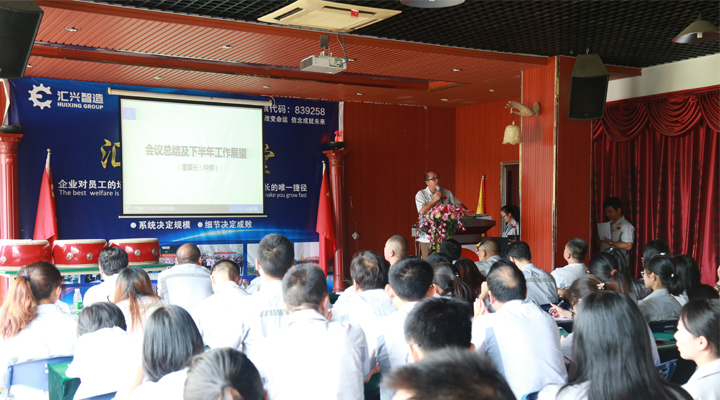 最后,由鐘輝董事長作會議總結及下半年的工作展望。回首上半年,經(jīng)過全體匯興人的共同努力,匯興智造的業(yè)績趕超去年一年,并再次交出了亮眼的成績單,以“優(yōu)等生”的身份成功晉級到新三板的創(chuàng)新層,這對公司未來的發(fā)展,特別是沖刺更高的資本巿場有著重要而深遠的意義。作為植根于大嶺山的本土民營企業(yè),十七年來勤勤勉勉,絲毫不曾懈怠,也感恩大嶺山鎮(zhèn)這片熱土和好的營商環(huán)境,眾多領導干部、學者專家多次蒞臨匯興智造參觀調研和指導,給匯興智造的發(fā)展建言獻策,增光添彩。匯興智造作為大嶺山鎮(zhèn)市級“倍增計劃”試點企業(yè),也是東莞市知識產(chǎn)權重點保護企業(yè),新近又被獲評為“2016年度廣東省守合同重信用單位”。今年五月份,企業(yè)倍增辦順勢成立,匯興智造力爭在兩年內(nèi),狠抓業(yè)績,推動企業(yè)實現(xiàn)規(guī)模倍增、效益倍增、納稅倍增,一切以結果為導向,所有匯興人定以鐵一般的信仰,鐵一般的信念,鐵一般的紀律,鐵一般的擔當、朝著既定的目標奮勇前進。