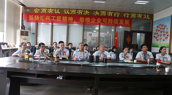 “聽黨指揮、作風優良、能打勝戰”這12個大字在匯興學校會議室里格外顯眼,這就是匯興智造的企業文化之一,彰顯企業永遠跟黨走的決心與信心。匯興智造作為民營企業,從默默無聞到一步一個腳印地崛起,發展壯大到目前備受社會各界人士的贊許與鼓勵,董事長鐘輝始終倡導不忘初心,誠信至上,以德興商,將其作為一種企業精神和價值信念不斷傳承,形成了具有本企業特點的價值準則、道德規范、經營觀念和文化理念。