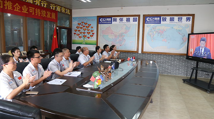 10月18日,中國共產黨第十九次全國代表大會在北京隆重開幕,廣東匯興精工智造股份有限公司(股票代碼:839258)黨支部積極組織黨員收聽收看大會開幕盛況,匯興黨員同志們為十九大確定的奮斗目標、描繪的宏偉藍圖歡欣鼓舞,紛紛表示要以十九大精神為指引,積極投身科學發展的偉大實踐,為建設現代工業4.0做出貢獻。