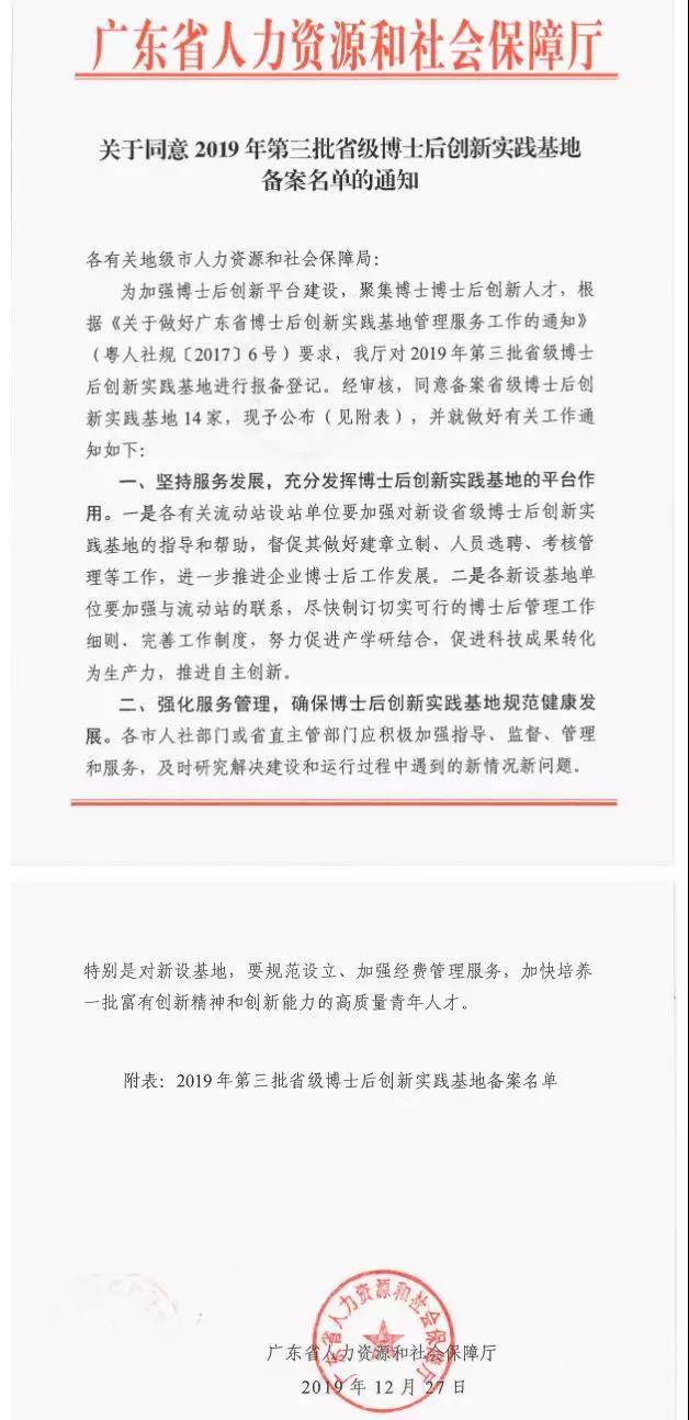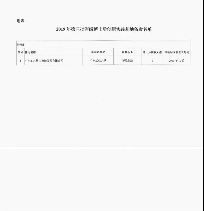 歲序剛翻新,喜訊緊相隨。日前,廣東匯興精工智造股份有限公司(簡稱:匯興智造)成功通過廣東省人力資源和社會保障廳備案,與廣東工業大學合作建立“省級博士后創新實踐基地”,為博士后科研平臺建設再添“生力軍”。