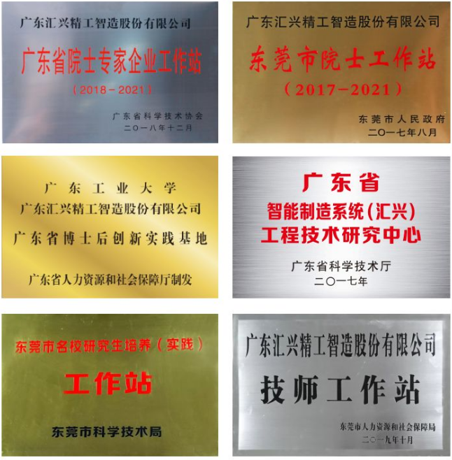匯興智造在智能制造領域擁有近20年的研發、設計、實施、應用經驗,通過打造智能裝備全產業鏈產品(智能裝備硬件+系統軟件+系統服務),賦予傳統生產制造業更智能的元素,并用具性價比的整廠自動化系統解決方案幫助更多企業解決生產制造的痛點。此外,公司還獲批建立了“廣東省院士專家企業工作站”、“東莞市院士工作站”、“省級博士后創新實踐基地”、“廣東省智能制造系統工程技術研究中心”、“東莞市研究生培養工作站”、“東莞市技師工作站”、“江西理工大學先進制造技術研發中心”、“南昌大學機電工程學院研究生聯合培養基地”、“南昌大學機電工程學院研究生實踐基地”、“東莞理工學院教學實習基地”、“東莞理工學院城市學院就業實習基地”、“東莞職業技術學院校企合作伙伴單位”等多個科研平臺,這些科研平臺的引進為技師工作站建設賦能。