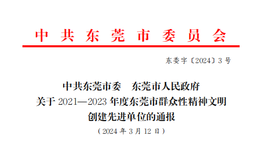 上榜啦!匯興智造獲授予“東莞市文明標兵單位”!